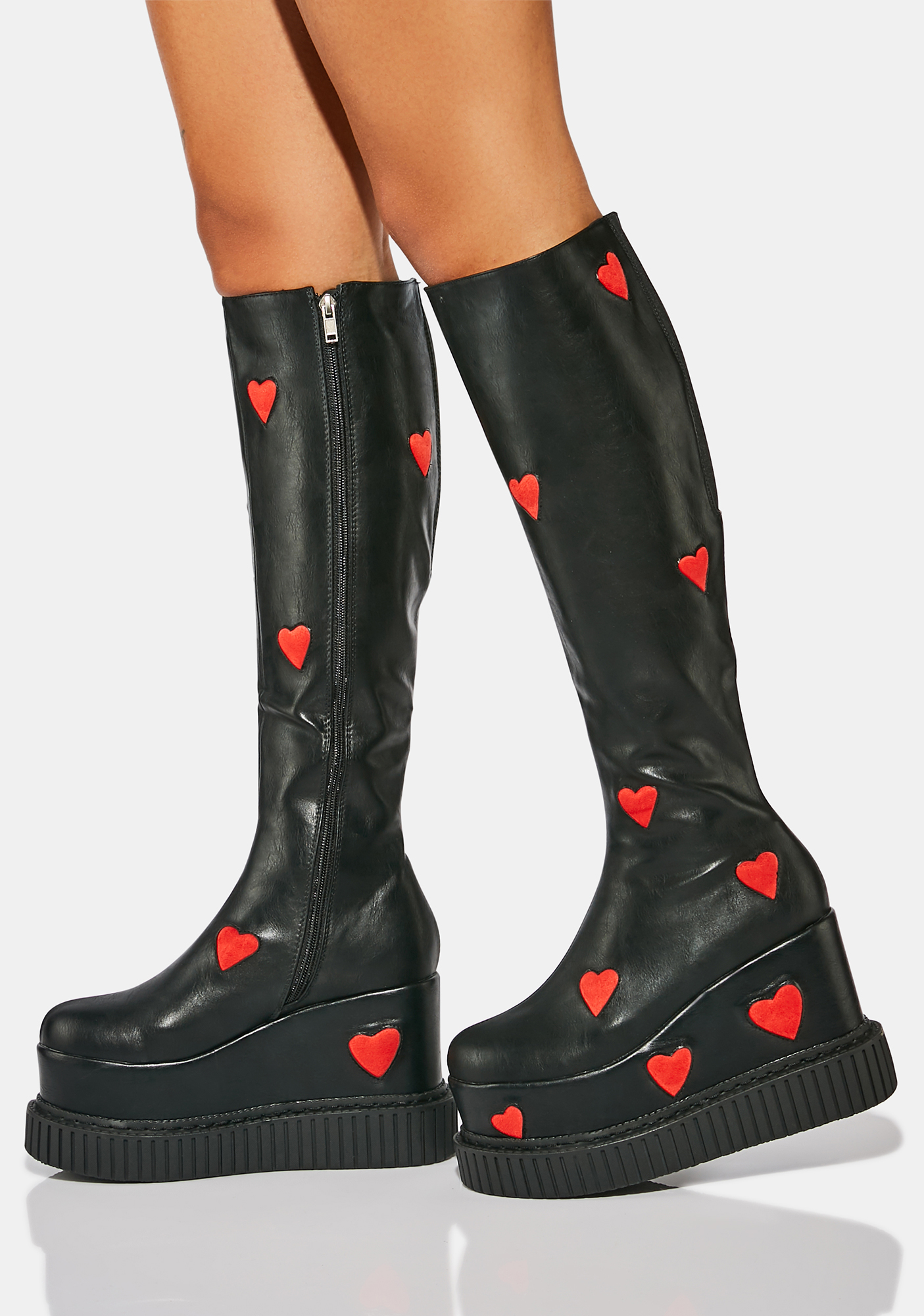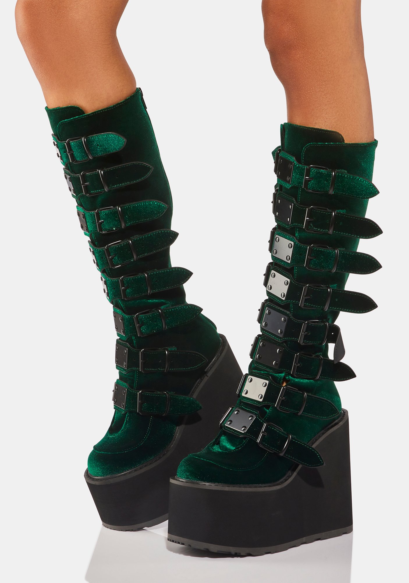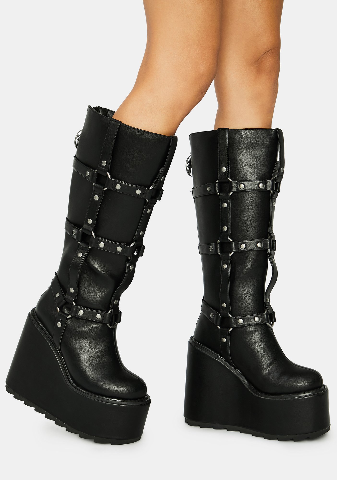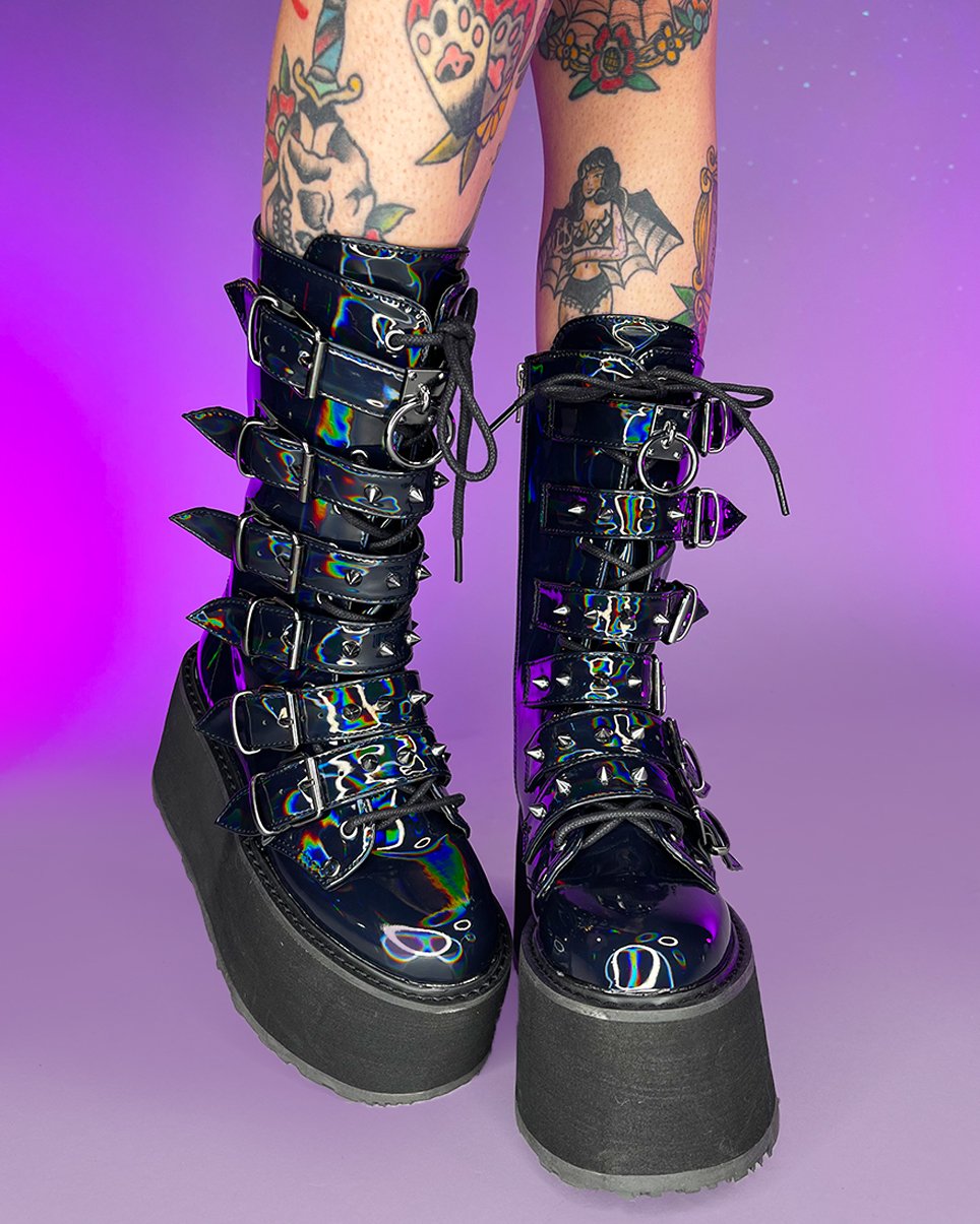 Black Holographic Studded Mid-Calf Platform Boots