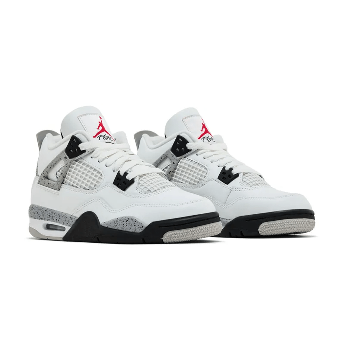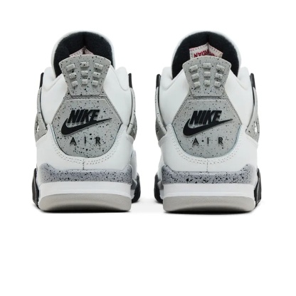 The Air Jordan 4 Retro OG GS 'White Cement' (2025) marks the return of a beloved classic, delivering timeless design with modern craftsmanship. This grade school (GS) edition features a Summit White leather upper, complemented by Tech Grey speckled accents on the TPU wings and heel tab. Black molded eyelets and a Fire Red Jumpman logo on the tongue add striking contrast, while the iconic Nike Air branding on the heel pays homage to the original 1989 release.
