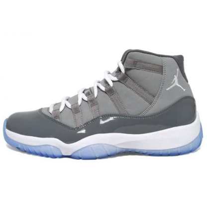 The Air Jordan 11 (XI) Retro Cool Greys (Medium Grey / White Cool Grey) were released on March 3, 2001. They are dubbed the Cool Greys after the official colorway, and feature a grey upper, which includes a beautiful grey patent leather which lies around the base of the shoe. The white midsole contrasts from the uppers colorway, drawing attention to the shoe, and sits on a clear outsole which features a herringbone traction pattern which provides great grip on the hardwood. The shoes specs include a carbon fiber spring plate, ballistic nylon uppers, a rubber outsole with herringbone traction pattern, quick lace system, carbon fiber sheath and air sole.