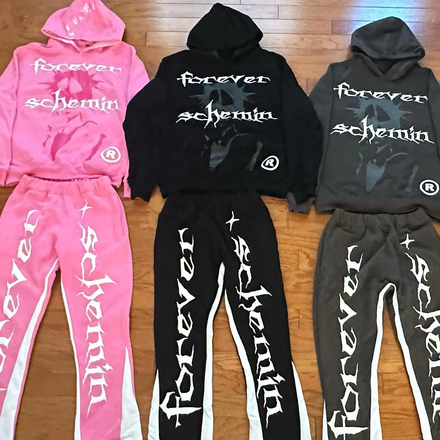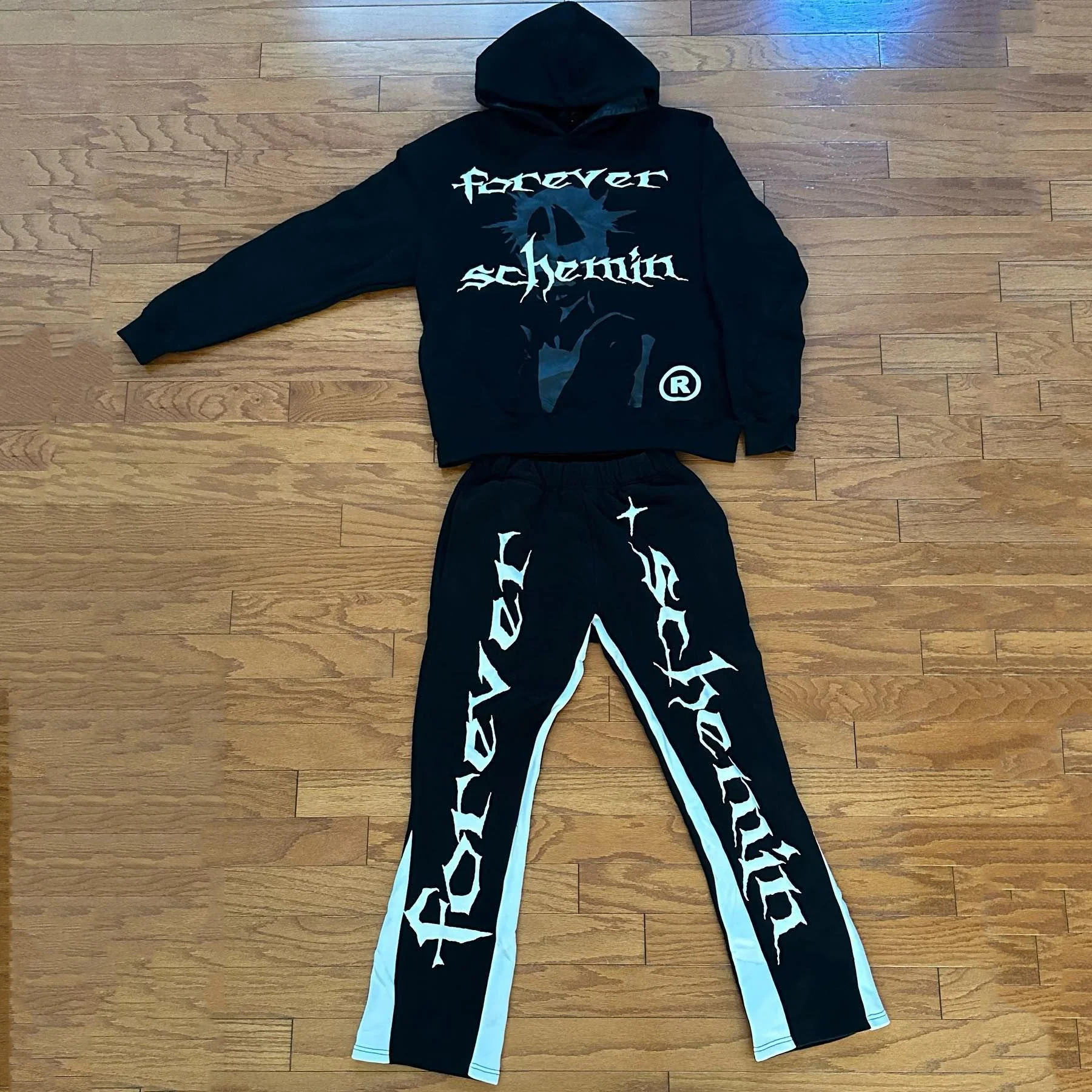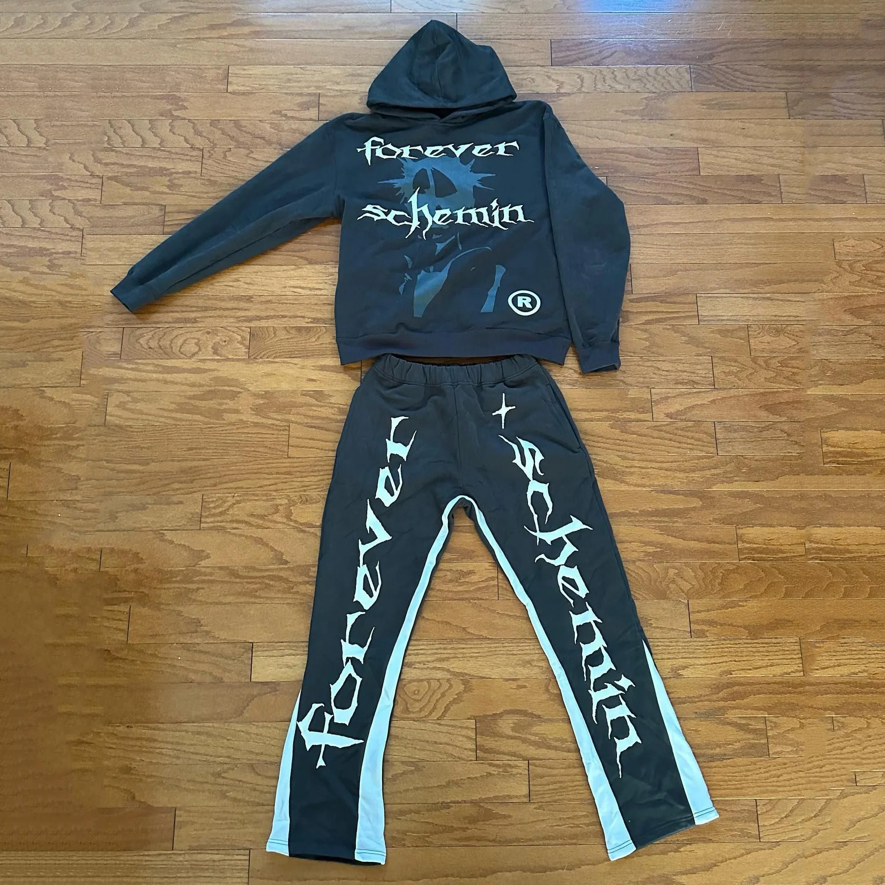 Forever Schemin Print Hoodie Sweatpants Two Piece Set