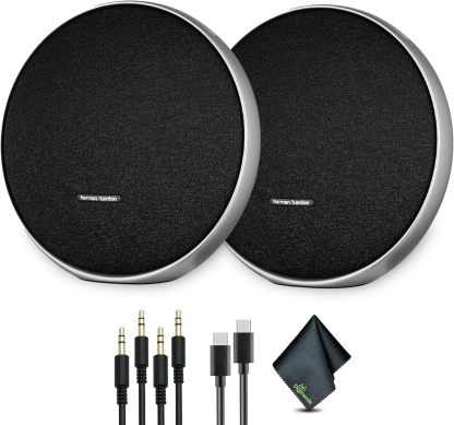 - This Bundle Includes: 2x Harman Kardon Onyx Studio 9 Portable Stereo Bluetooth Speaker, 2x Aux Cable, Power Supply, Type-C Cable, Fiber Cloth