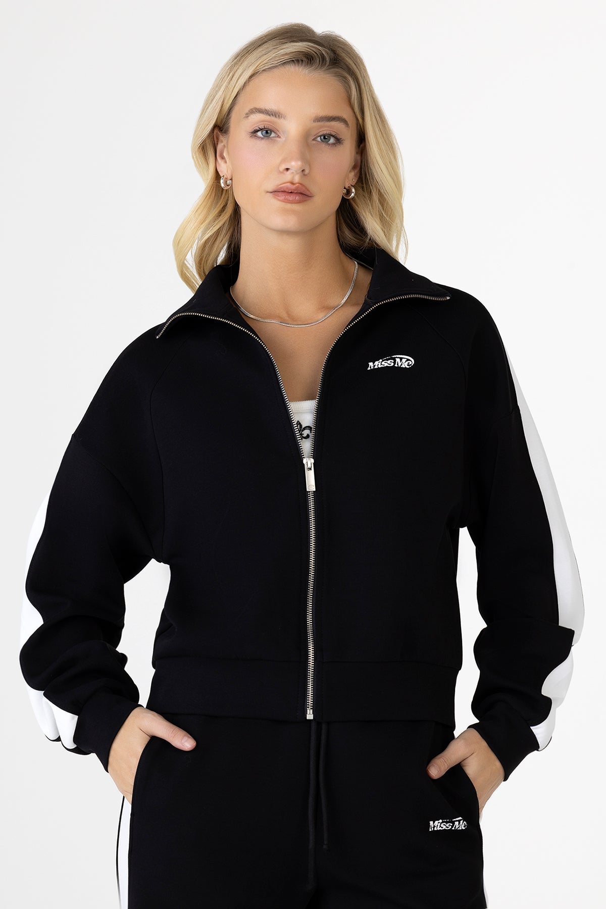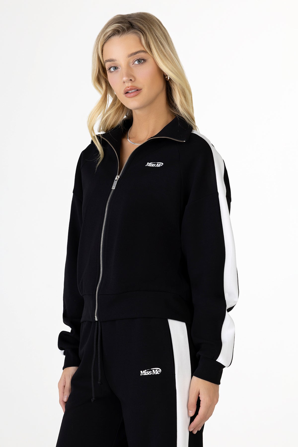 Fabric Content: Self 50% Cotton, 45% Polyester, 5% Spandex; Contrast 50% Cotton, 45% Polyester, 5% Spandex
