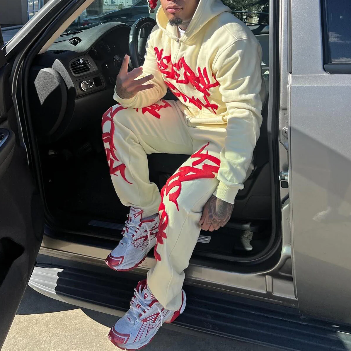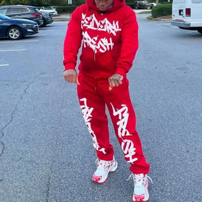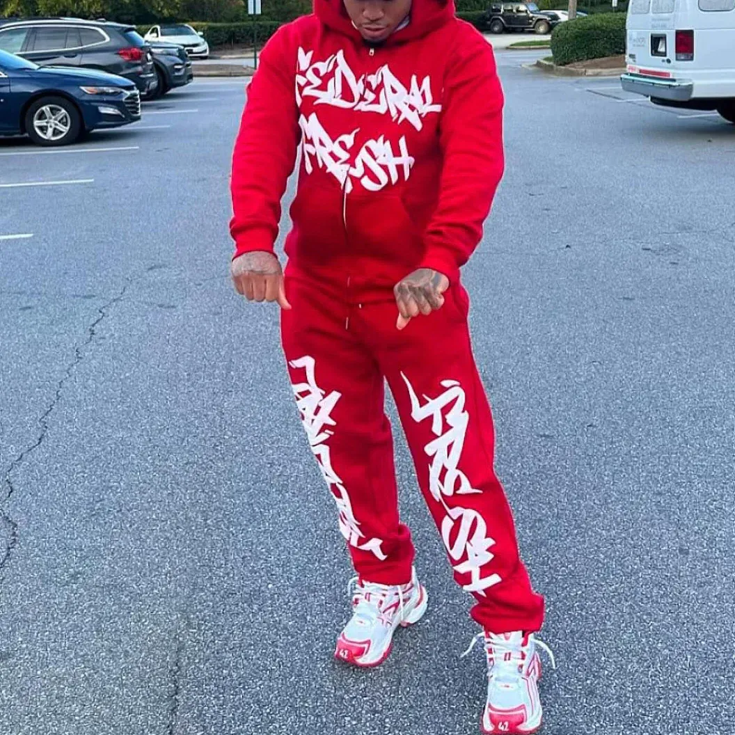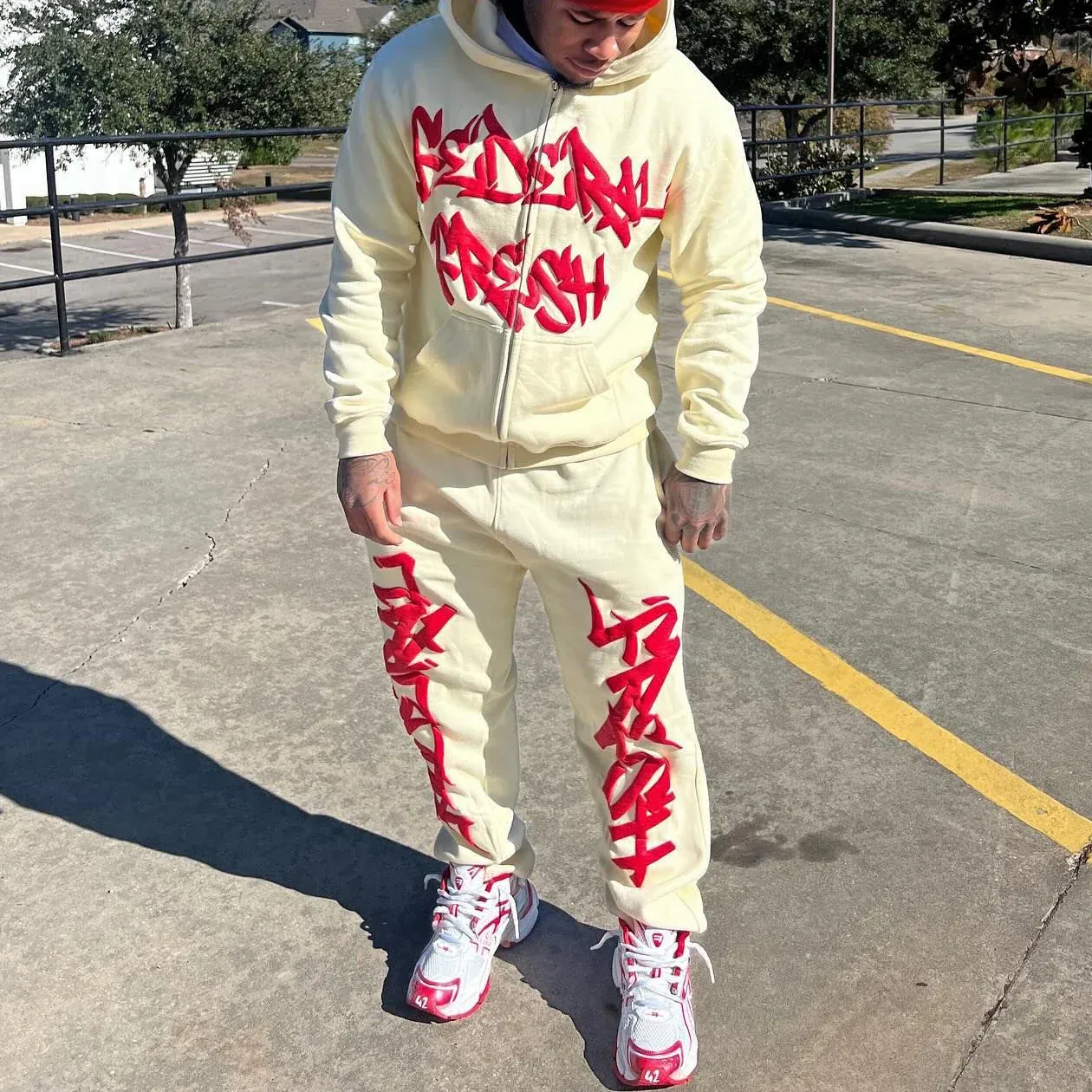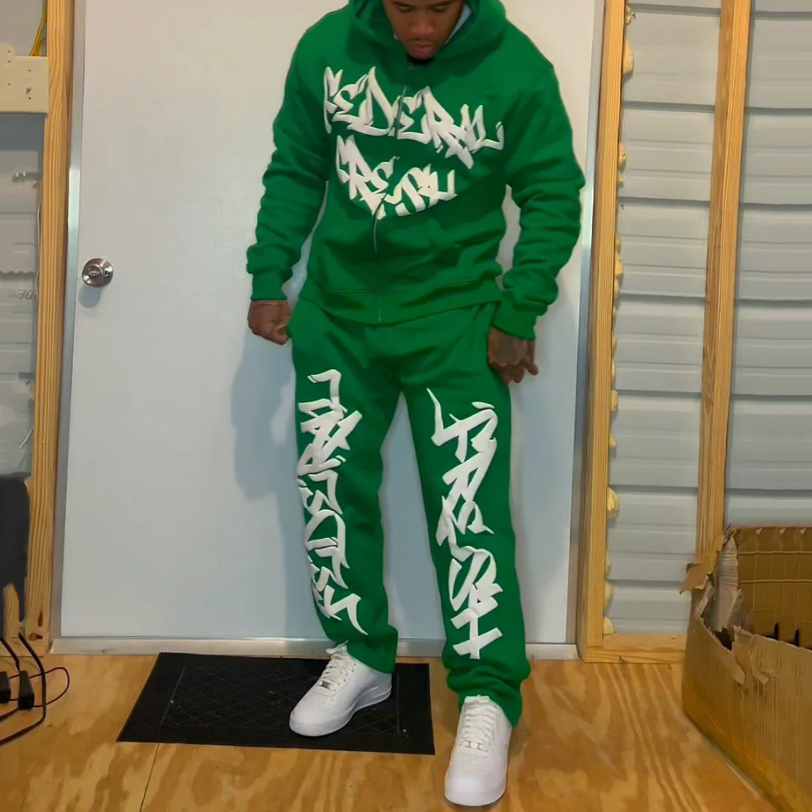 Personalized Letters Print Zipper Hoodie Sweatpants Two Piece Set