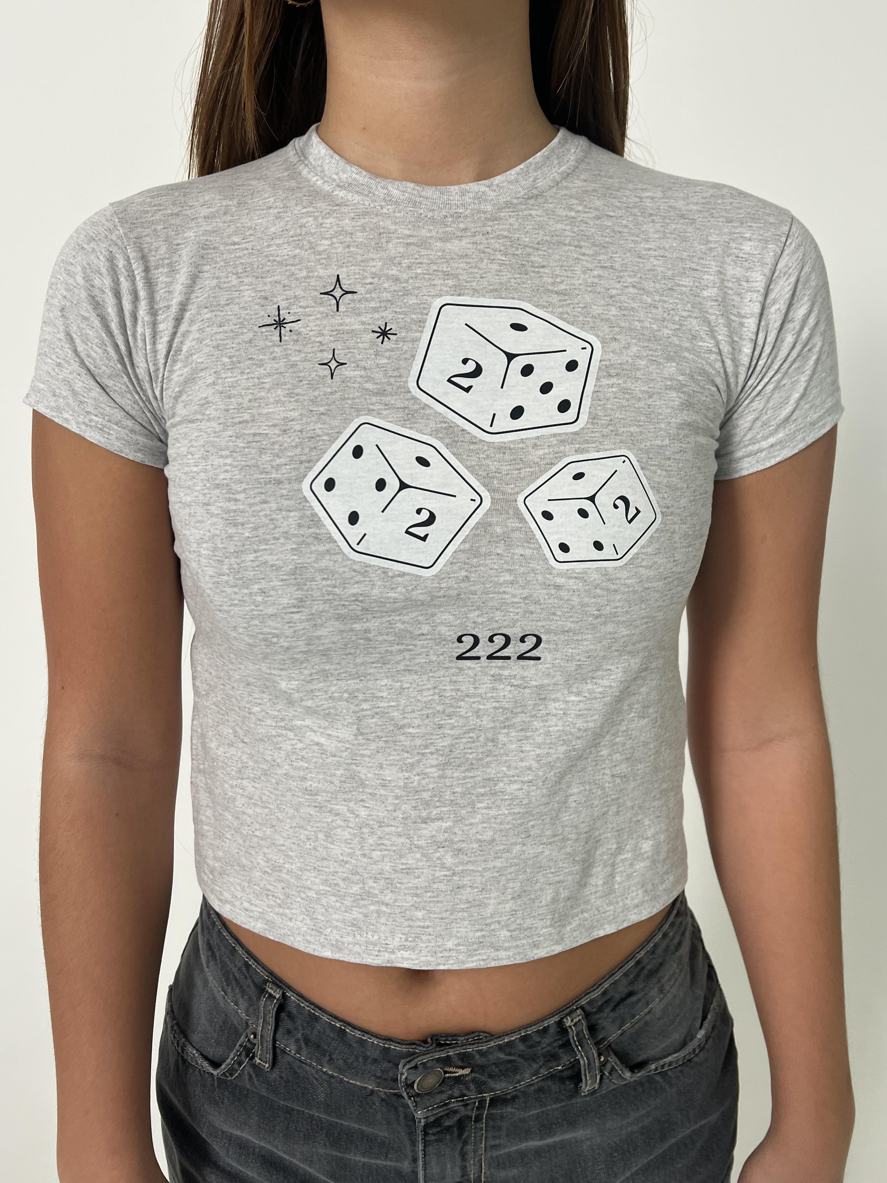 Baby tee with "222" and dice. Our tees are from fruit of the loom and in a super soft and comfortable quality.