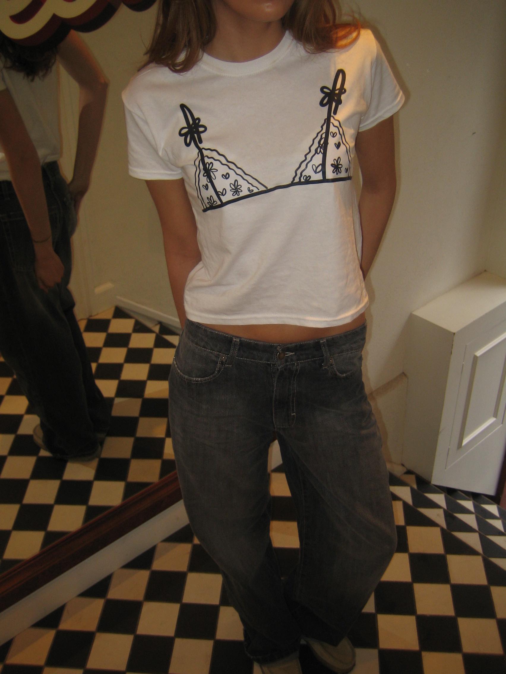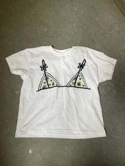 Baby tee with a bralette. Our tees are from fruit of the loom in a super soft and comfortable quality.