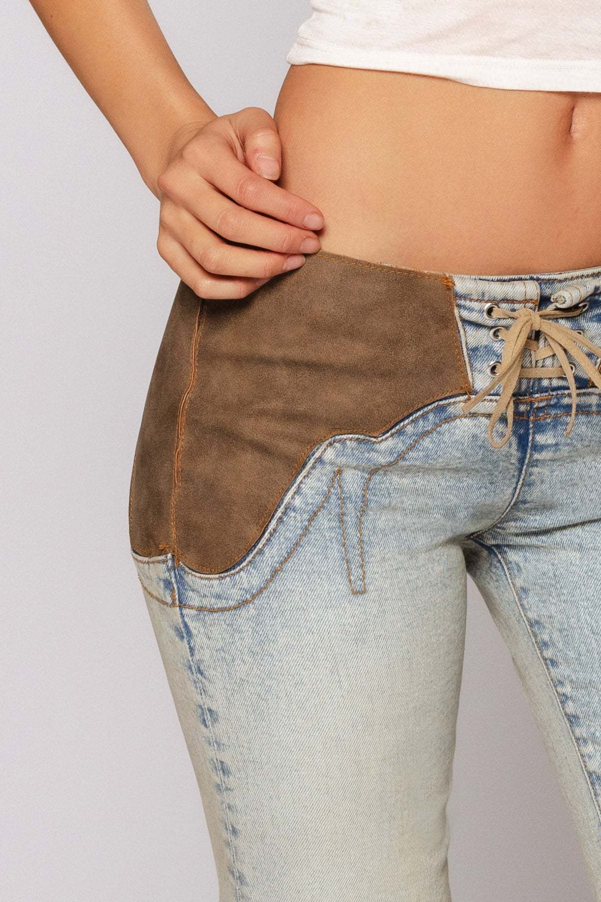 This season's headliner is.....Revice and we've got your western wardrobe covered with our Headliner Jean. A re-imagined take on our best-selling Wild West Jean -- a forever favorite. Our unique super-low-rise features our signature R design with a lace-up front and contoured back. While our baby-flare silhouette elongates your legs, our contoured design lifts and shapes your booty for the ultimate confidence boost. Now in our Jolene Wash-- a vintage light wash with distressed leather trims.