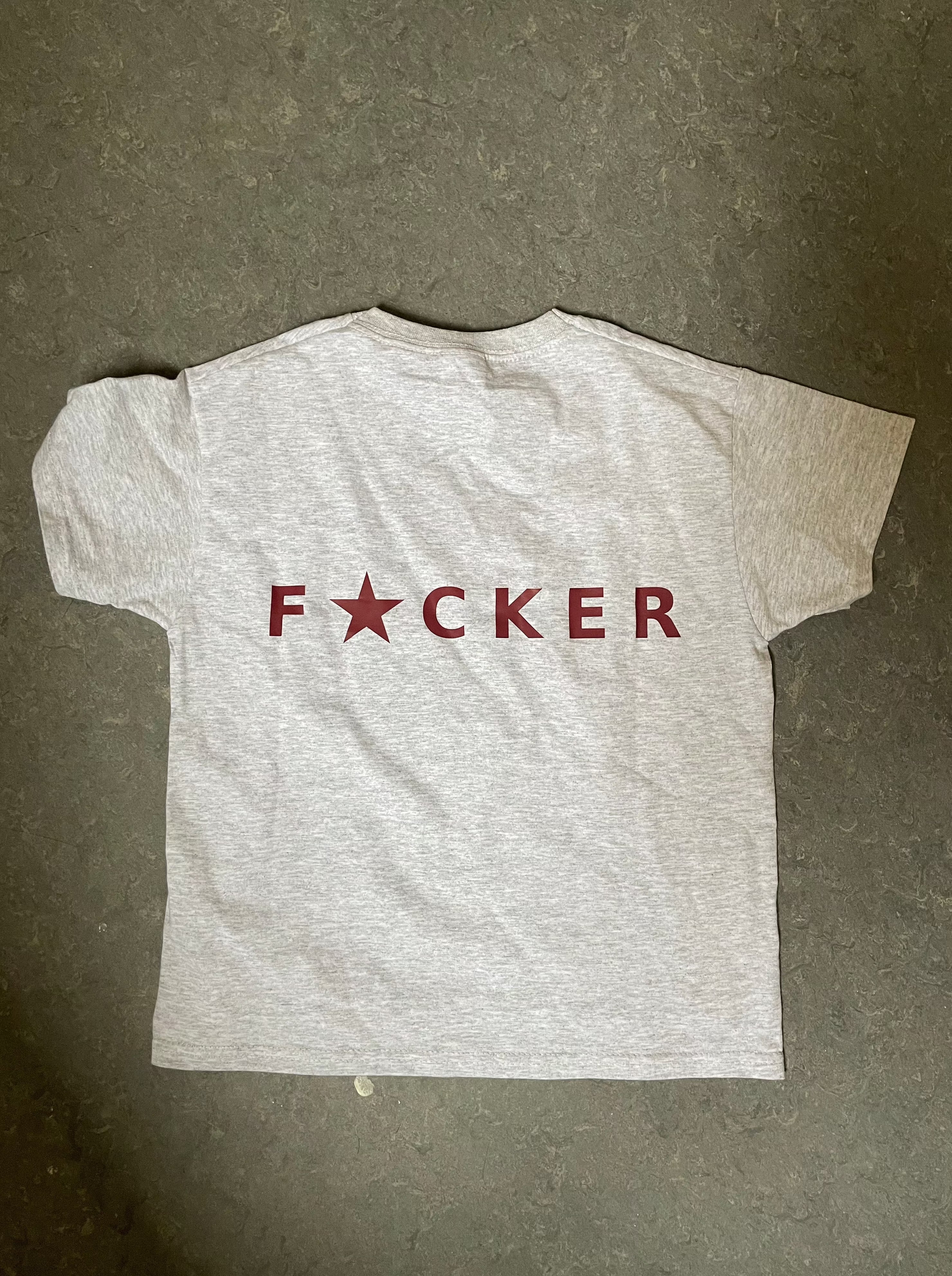 Baby tee with the text "mother" on the front and "f*cker" on the back, with a star between the f and the c. Our tees are from fruit of the loom and in a super soft and comfortable quality.