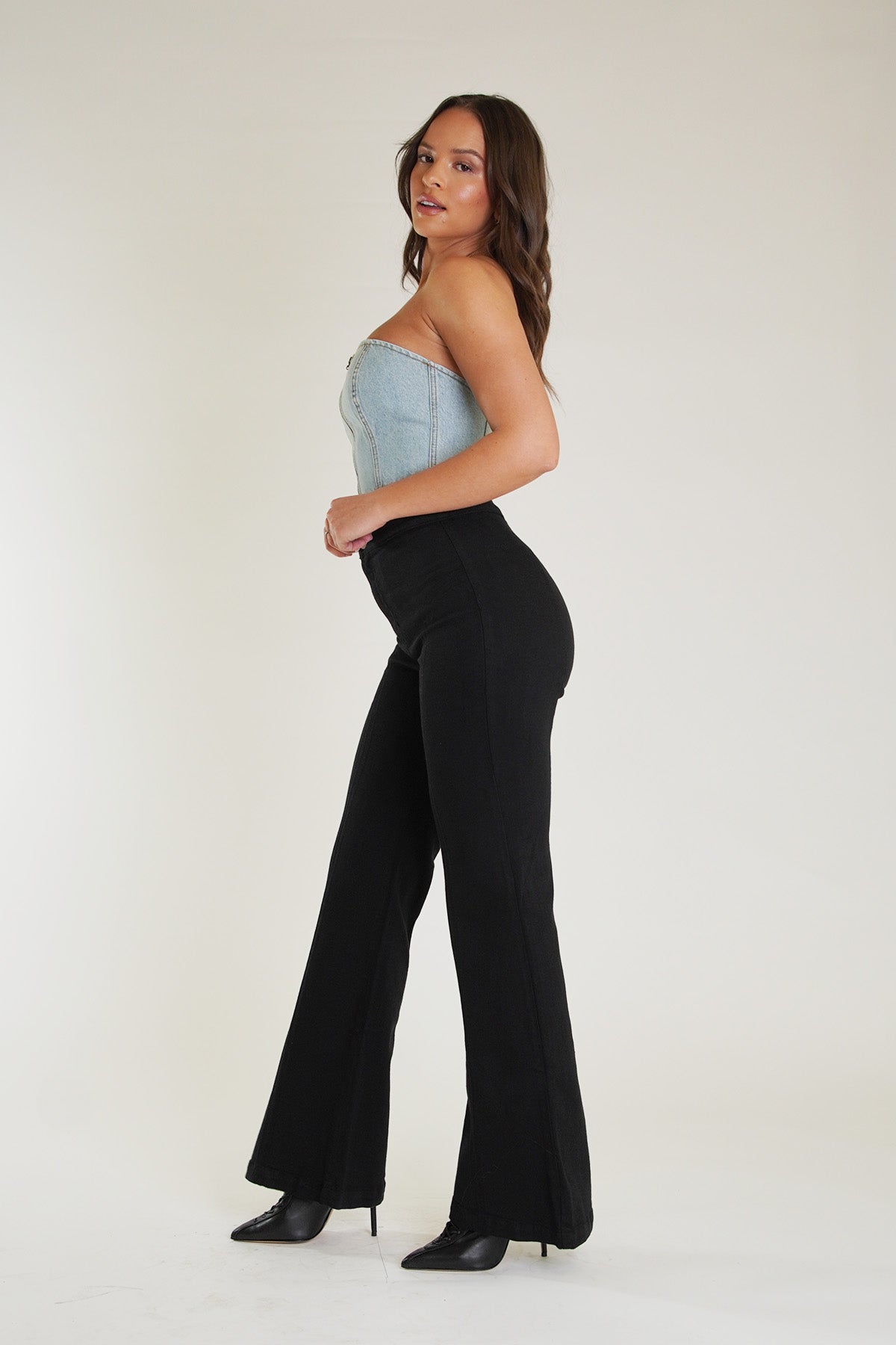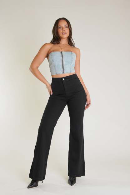 With premium fabric and careful hand-stitched design, we created these dreamy 70's inspired bells. These jeans are high-waisted and fitted. Made to hug your hips and accentuate your curves.