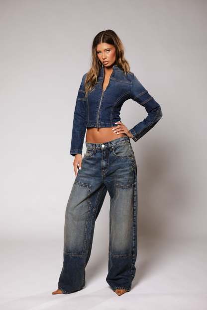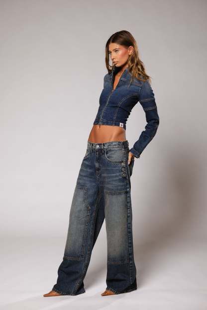 Your go-to fall jean is here! The Mason Jean is meticulously designed to effortlessly transition from low-rise to mid-rise for not only customizable comfort but unlimited ways to style. The Mason features a carpenter patch and adjustable side pocket details, combining style with practicality. With its unique front pocket flap detail, these jeans offer a distinctive one-of-a-kind touch to elevate your look effortlessly. Size up for a baggier look.