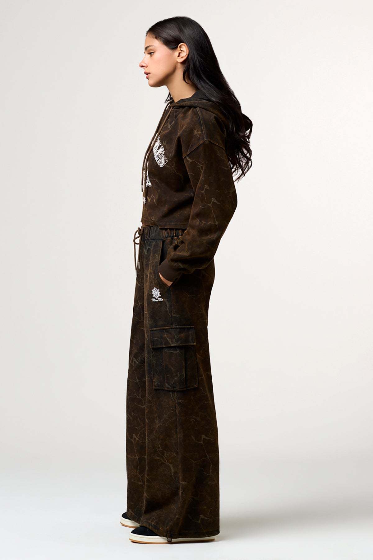 Marble-effect cargo sweatpants