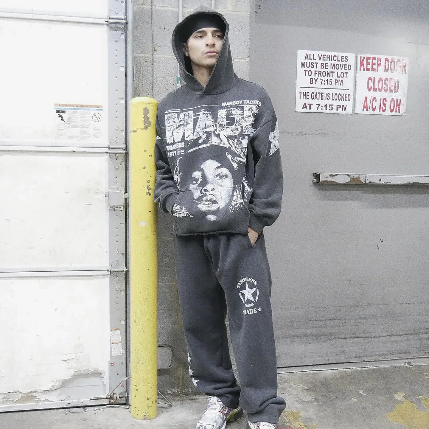 Revolutionary Army Print Casual Street Hoodie Export Two Piece Set
