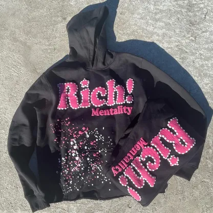 Rich Mentality Print Hoodie Sweatpants Two Piece Set